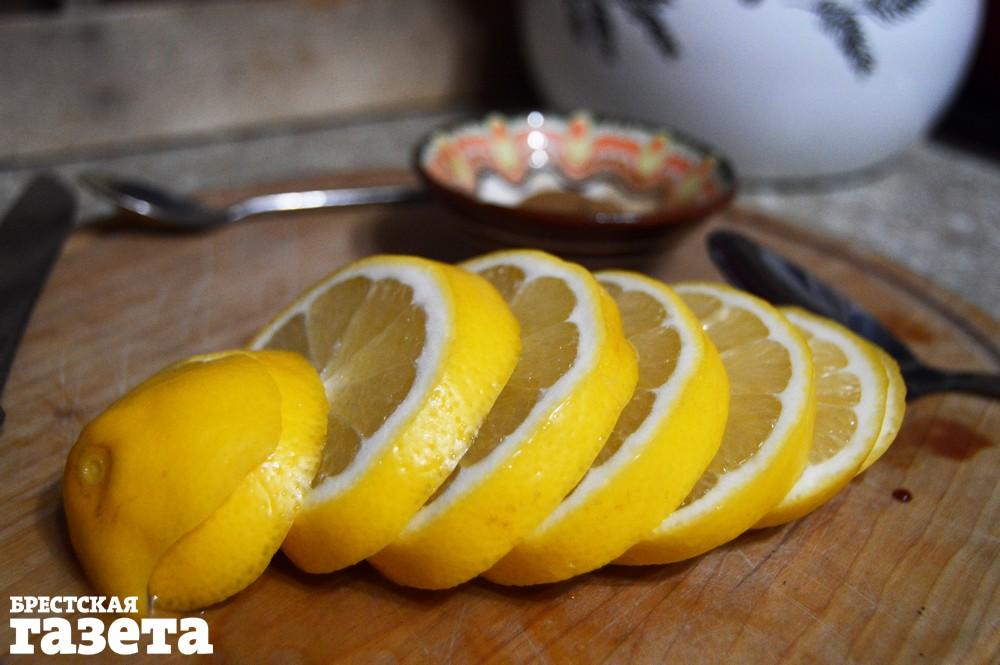 Лимон помойте под горячей водой. Вместе с кожурой разрежьте на 6-8 частей, удалите косточки.