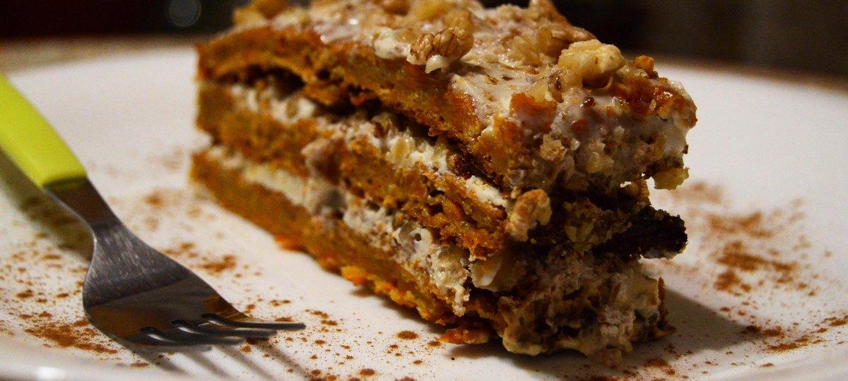 Большой прямоугольный противень смажьте растительным маслом и выложите туда морковное тесто. Выпекайте в духовке 50 минут при температуре 180 градусов. Готовность проверяйте зубочисткой.