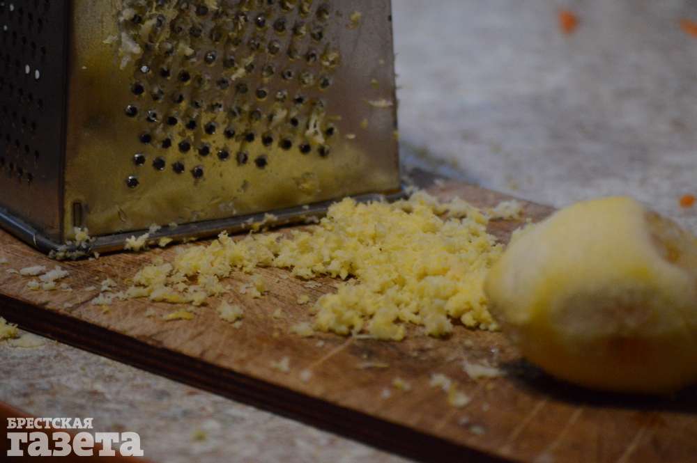 Готовим: Морковь очистите и натрите на крупной терке. У лимона натрите цедру и выжмите сок. Добавьте их к моркови. Затем в миску к моркови разбейте яйца, всыпьте корицу, соду, гашенную уксусом, и мед. Добавьте манку, все хорошо перемешайте и оставьте на полчаса, чтобы манка разбухла.