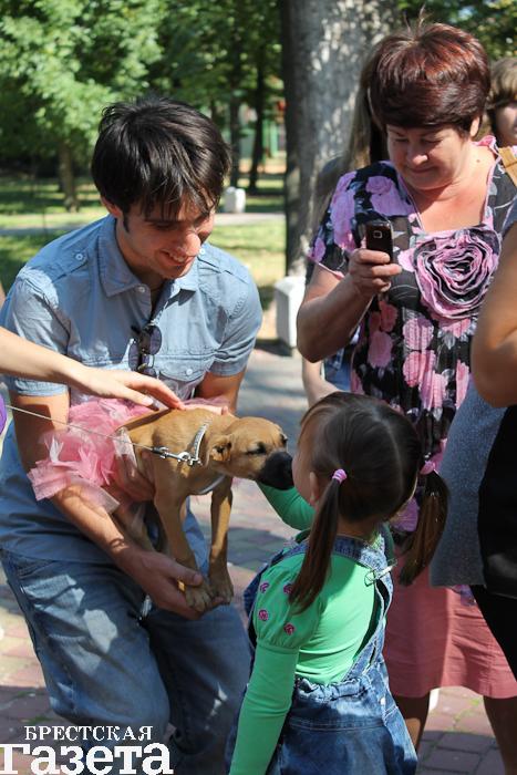 Заглянули на акцию и старые знакомые «Доброты», уже нашедшие благодаря приюту питомца. Екатерина, Михаил и маленький Иван пришли с лохматой Молли, которая сразу оказалась в центре внимания публики. Собака была подобрана волонтерами, когда она блуждала беременной по брестским улицам. Ей нашли новый дом. «Мы хотели большую собаку и случайно увидели объявление с фотографией Молли. Пришли в приют и забрали ее. Она умница, спокойная, проблем с ней никаких не возникает, не кусается. Даже ребенок ездит на ней верхом», — рассказала семья о своей любимице.