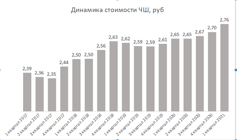 Рост стоимости ЧШ сразу на 6 копеек за квартал является рекордным с конца 2018 года
