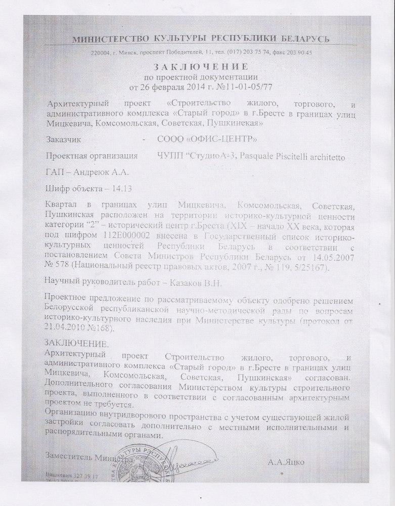 Корреспондентом была предпринята попытка узнать, почему до сих пор нет ответа на коллективное письмо брестчан, выступающих против строительства комплекса «Старый город». Однако начальник отдела по работе с обращениями граждан и юридических лиц горисполкома Ирина Мокат решительно заявила: «Вы являетесь одним из заявителей? Нет? Значит, по закону об обращениях граждан я вам ответ на ваш вопрос дать не могу. Я понимаю, были бы вы заявителем. Тогда по предъявлении паспорта — пожалуйста».