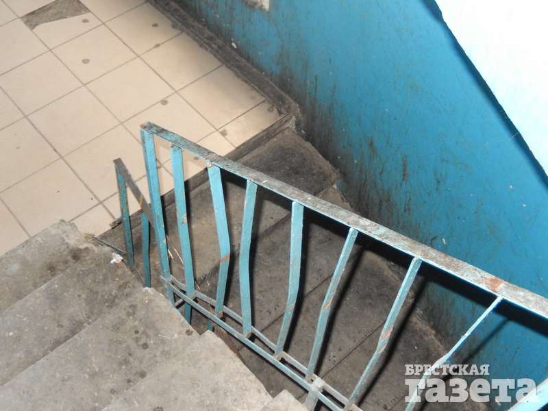 «Посмотрите, какие перила, детей страшно отпускать, — пожаловалась Надежда, когда мы начали спускаться по лестнице. — Если свалится, то кубарем на первый этаж упадет. Лампочки вкрутить — денег нет. Вечером выходишь — невозможно по лестнице спуститься».
