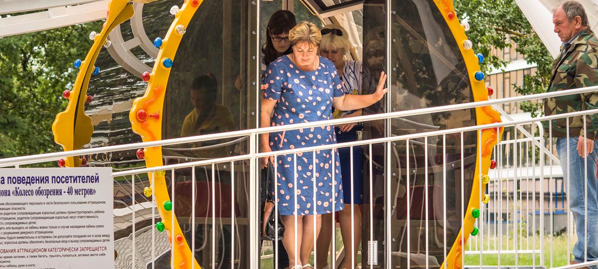 — Я ваша гостья из России, приехала к внучке, и вот она меня сюда привела, — улыбается Надежда Арамовна. — На колесе в первый раз. В России каталась, но у нас маленькие колеса, не такого диаметра. Очень понравилось ваше: обдуманное, для всех категорий. Для людей постарше — закрытые кабины, для молодежи, которая любят экстрим, — открытые. Мы были в закрытой, конечно, по моей просьбе, а внучка хотела в открытую, которая бананчиком перекрывается. Город с высоты, конечно, красивый. Даже на Польшу посмотрела.