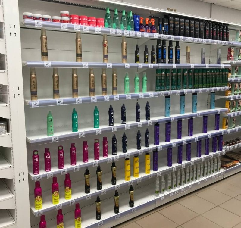 Так выглядит стеллаж одного из магазинов в Лиде. Его внешний вид совпадает с рассказами беларусов о том, как им стало труднее найти некоторые косметические товары и бытовую химию. «Пусть она [Наталья Кочанова] расскажет про женскую гигиену. Приходится мужа просить привезти с Европы тампоны нормальные», — поделилась собеседница.