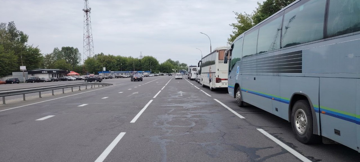 «РБ — РП. Вчера в 22.30 выехали из Барановичей. Где-то в час ночи [28 мая] были на границе, перед нами было около 10 автобусов, точно не считала. В 5 утра прошли паспортный РБ. Сейчас 10.55, стоим на выезд из РБ, уже 6 час, и, наверное, третий, как мы первые на выезд. Не выпускают. Пропускают много легковых. Въехали в РП в 14.30».
