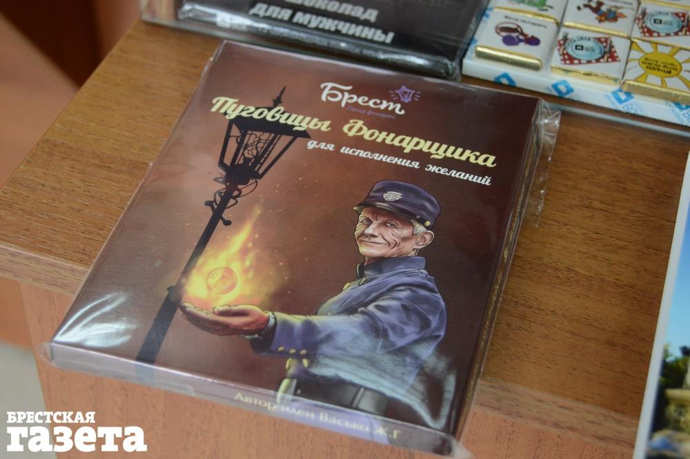 Фонарщик — это одна из достопримечательностей Бреста. С 2009 года изо дня в день, невзирая на жару или холод, он поднимается по лестнице и вручную зажигает и гасит керосиновые лампы в фонарях, установленных на улице Советской. Время зажжения фонарей обозначают на специальных часах, которые располагаются на пересечении улицы с проспектом Машерова. Говорят, если подержаться за пуговицу на форме фонарщика и загадать желание, оно обязательно исполнится. А с недавних пор в Бресте можно эти самые пуговицы фонарщика купить и увезти с собой. На счастье, на память или для услады — решать вам, ведь сделаны они из шоколада.