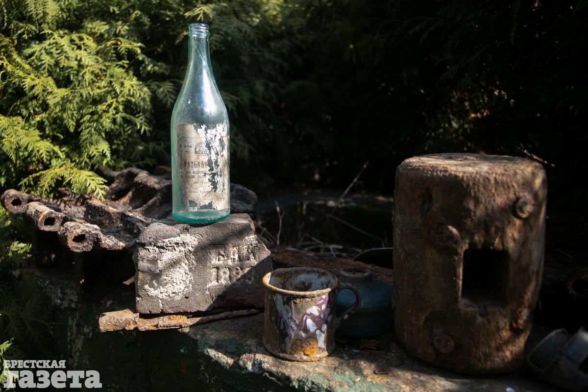 Моисей Степанович показал нам несколько находок, которые были сделаны при расчистке казематов: советскую бутылку, произведенную в Минске, польскую эмалированную кружку, стеклянную колбу керосиновой лампы, часть трака, солдатскую алюминиевую миску… Все эти находки останутся в экспозиции небольшого музея при монастыре, который планируется создать после завершения строительных работ.