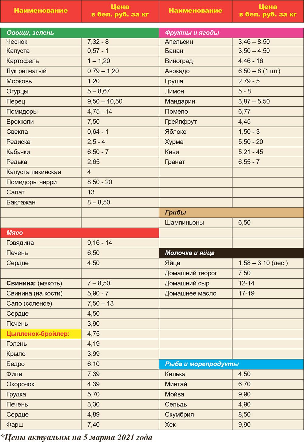 Цены на конкретные фрукты смотрите в таблице ниже.
