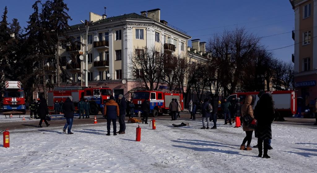 Запланированное мероприятие от МЧС на площади Ленина началось вовремя. Посмотреть на шоу спасателей, вопреки морозу и ветру, пришло несколько сотен человек.