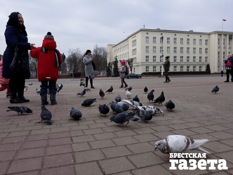 В воскресенье 11 марта в Бресте более 100 человек вышли на площадь Ленина, чтобы покормить голубей. Уже третье воскресенье подряд брестчане выходят на главную площадь города, чтобы таким образом донести свой протест против появления под Брестом аккумуляторного завода «АйПауэр» до местных властей.