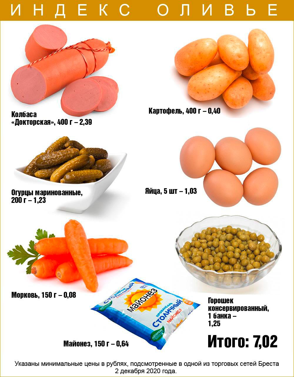 В итоге получилось, что миска оливье для брестчанина в этом году обойдется минимум в 7,02 рубля, что на 2% больше, чем в прошлом году.