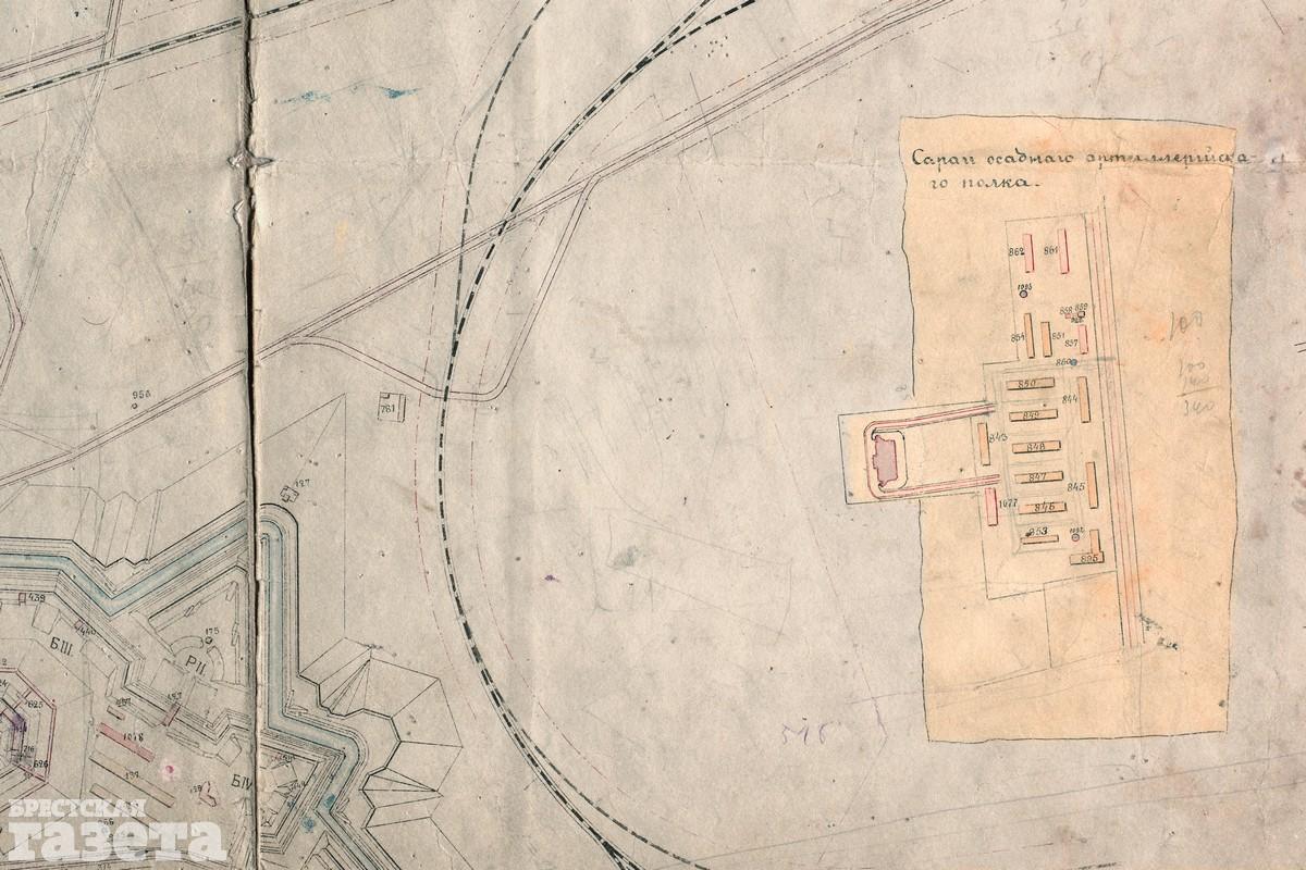 Фрагмент Генерального плана крепости с показанием номеров строений. РГВИА ф.13126 оп. 2 д. 33-3. Предоставлен Фондом развития Брестской крепости.