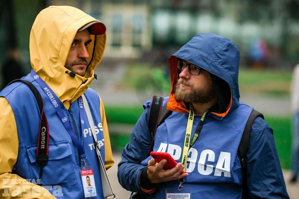 Этот материал о тех, кто сегодня на информационной передовой. О людях в жилетах с надписью «ПРЕССА». О тех, кто в прямом смысле пишет историю страны и нашего любимого города Бреста.