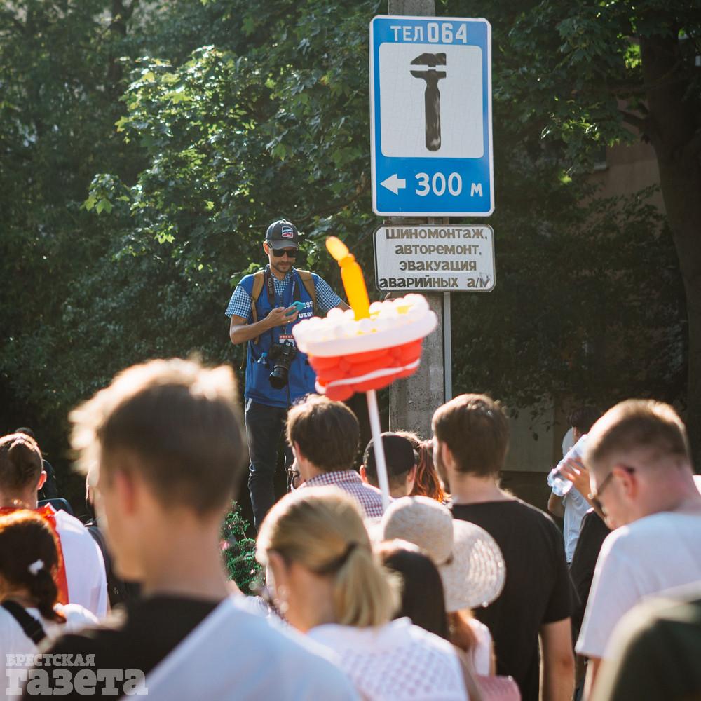 , фотокорреспондент «Брестской газеты»: На случай задержания есть так называемый «оберег» в виде синего жилета с надписью «Пресса», удостоверение и редакционное задание. Но проблема в том, что сегодня задержать могут любого. И мы с коллегами не исключение. Действие «оберега» зависит от настроения людей в масках.