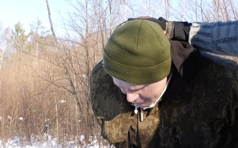 По версии госТВ, взрывчатку из тайников забирал бывший нафтановец из Новополоцка Сергей Еремеев, которого задержали в России и обвиняют в подрыве поездов на БАМе в Бурятии в ноябре 2023 года. В сюжете Еремеева держат в наручниках, на которые закреплены цепи. Его привели на место, где якобы были тайники.