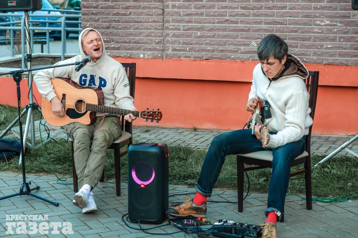 Во дворе на Гоголя собралось около сотни взрослых и детей. Музыкант объявил, что дворовой акустический концерт пройдет под названием «Пока не в изоляторе».