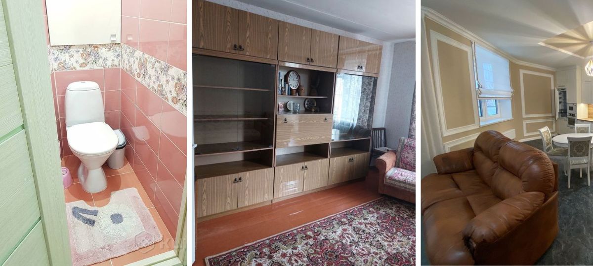 Мы снова взяли с kufar.by несколько объявлений подряд. Судя по фото, дизайн в этих квартирах давно не обновлялся.