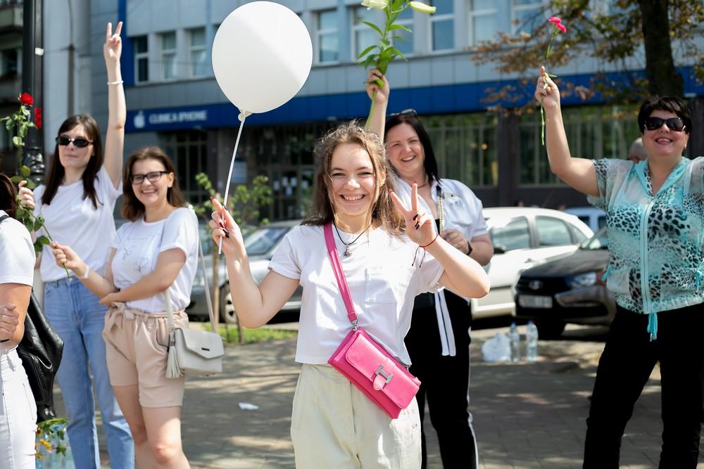 Мирная акция брестчанок в белом в Бресте 14 августа 2020