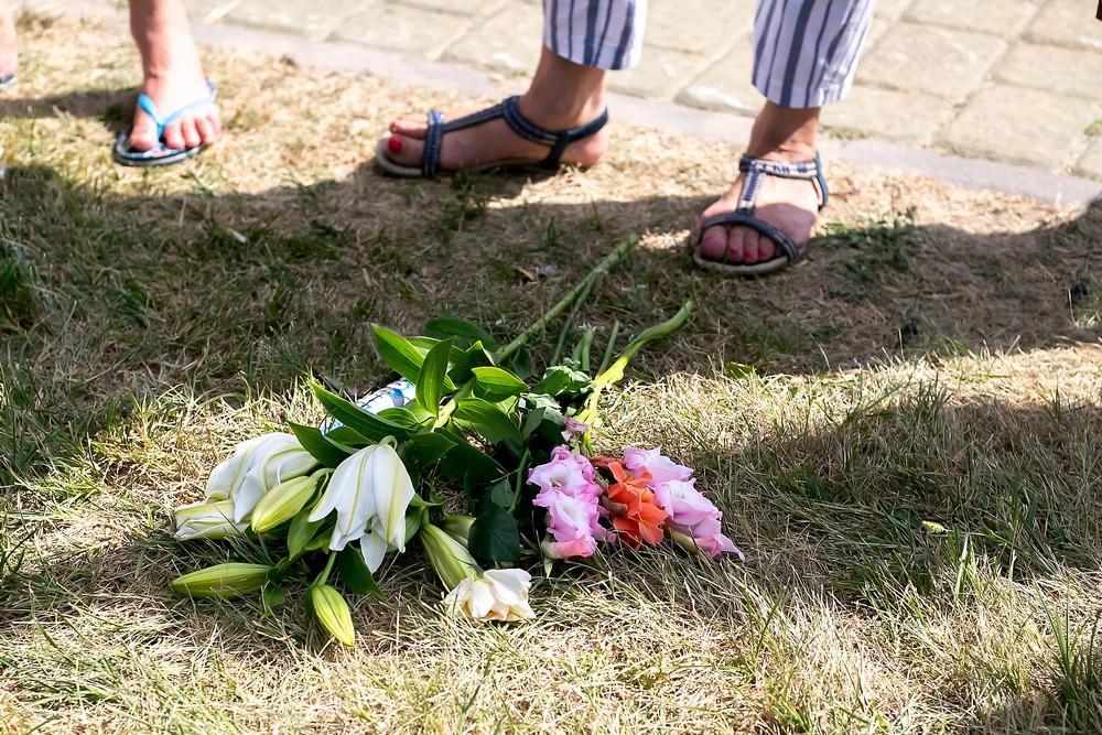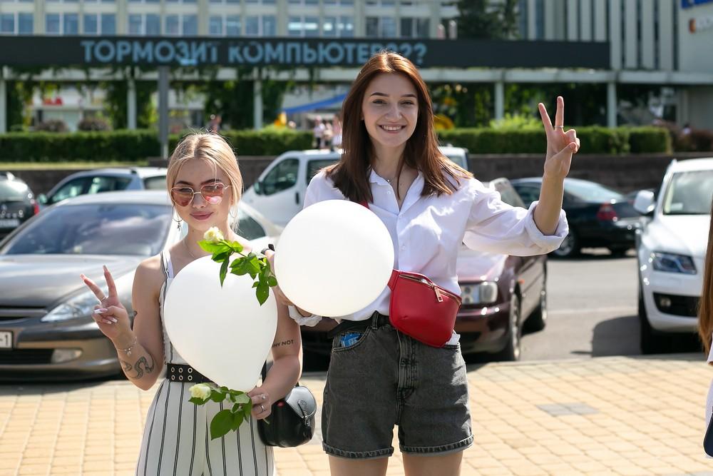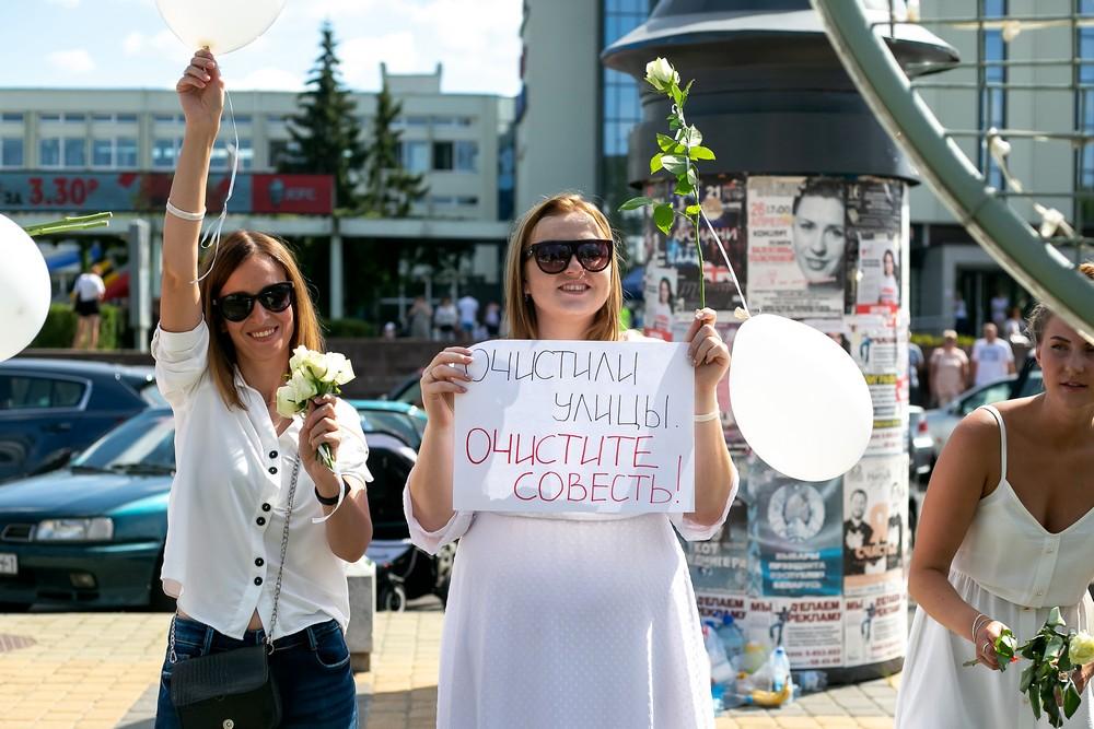Женщины выстроились вдоль проспекта Машерова от улицы Ленина до Кобринского моста с мирной акцией несогласия в пятницу 14 августа в Бресте.