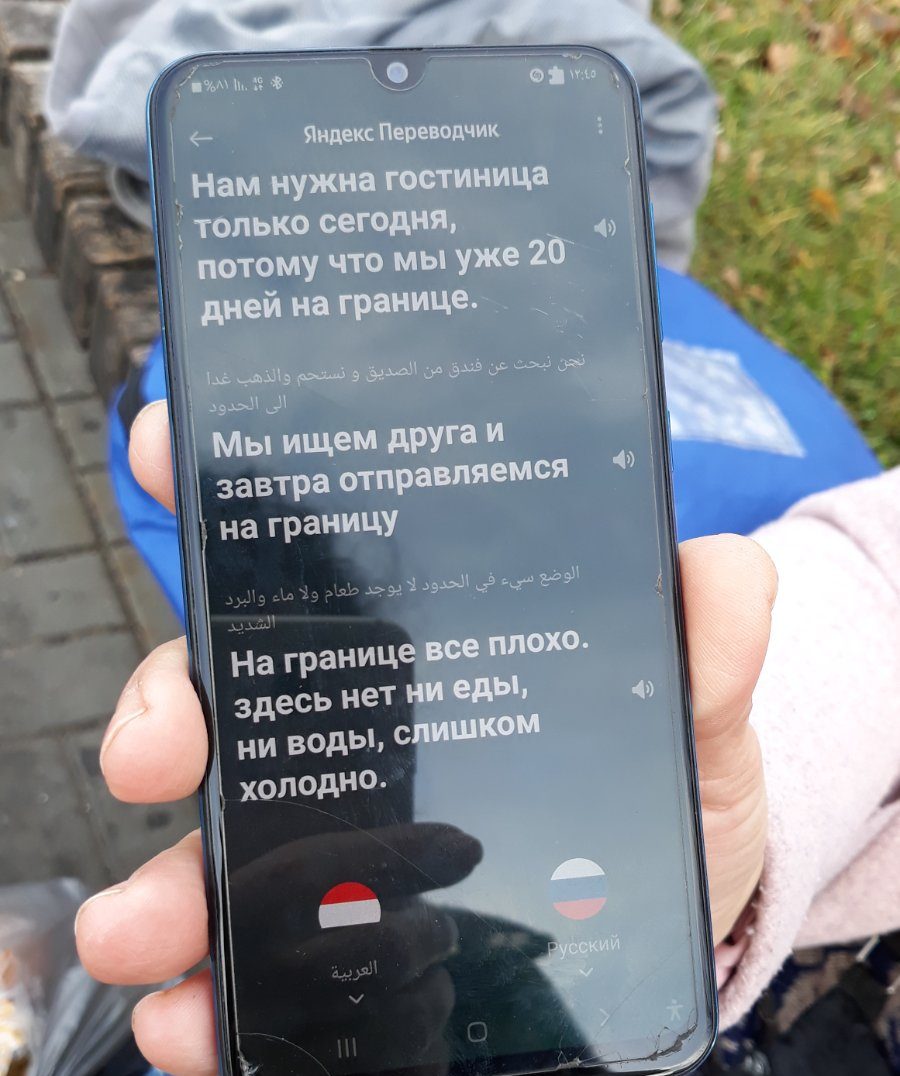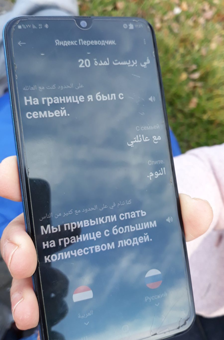Мигранты, которых мы встретили недалеко от вокзала, разговаривают только на арабском. Общались – через Яндекс-переводчик. Говорят, что на границе плохо.