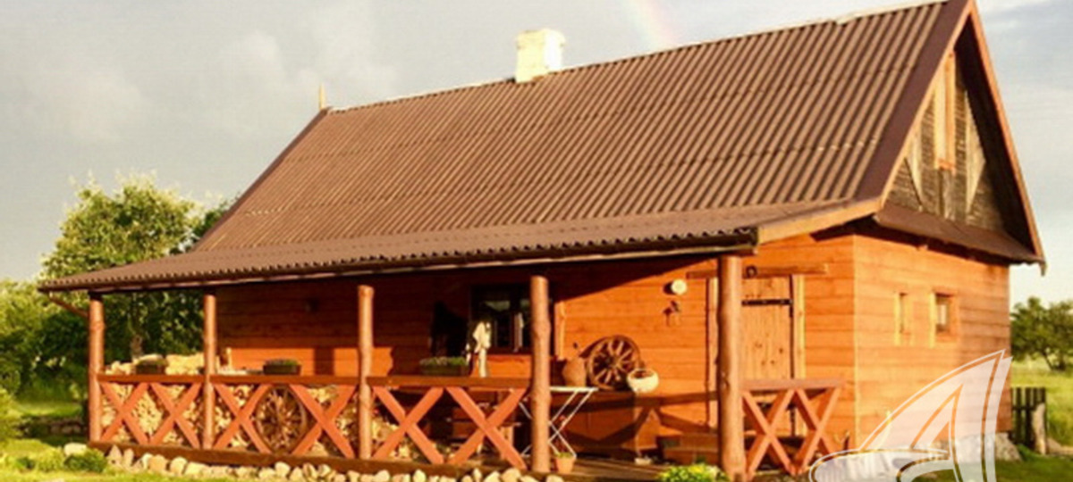 Усадьба в старинном деревенском стиле находится в окрестностях Беловежской пущи. Дом построен из бруса пущанского леса на валунах и выглядит как тот самый домик в деревне. Стены утеплены минеральной ватой. Для сохранения аутентичности на окнах стоят деревянные стеклопакеты. Общая площадь дома составляет около 78,0 кв. м.