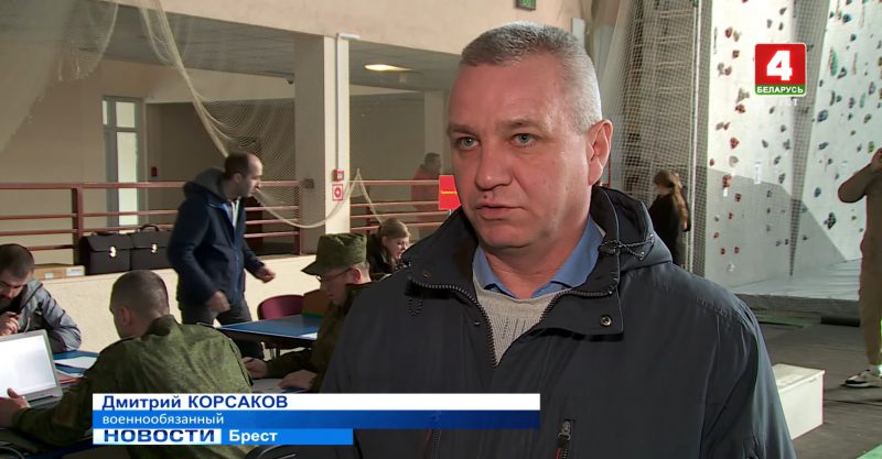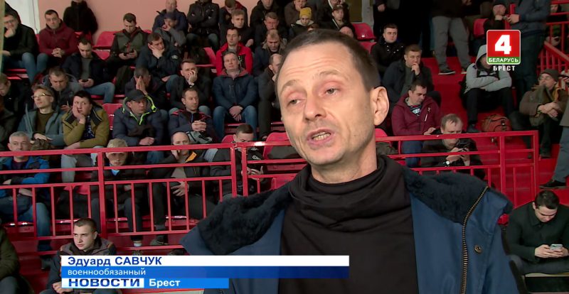 Далее ролик продолжается короткими интервью с военнообязанными брестчанами Эдуардом Савчуком и Дмитрием Корсаковым. Они говорят, что обновляют знания во время таких проверок боеготовности. Дмитрий еще и подчеркивает, что его вызывают каждый год.