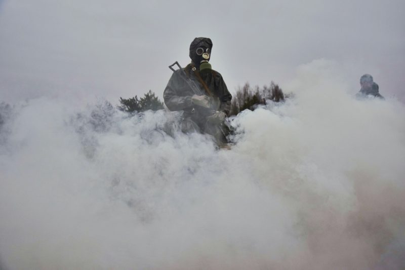 На двух других фото разведчики надевают противогазы во время дымовой завесы и эффектно стоят на месте в дыму. А в чем заключалось задание? Как можно быстрее надеть противогаз? Или устроить дымовую завесу, чтобы покинуть поле боя?