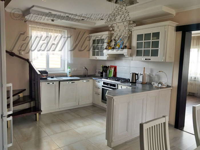 В доме — евроремонт в стиле минимализма, немало уникальных дизайнерских решений. Многоуровневая подсветка создает трехмерный объем, полы – керамогранит с подогревом. Комнаты обставлены функциональной мебелью и техникой, в санузле – сантехника прогрессивных моделей.