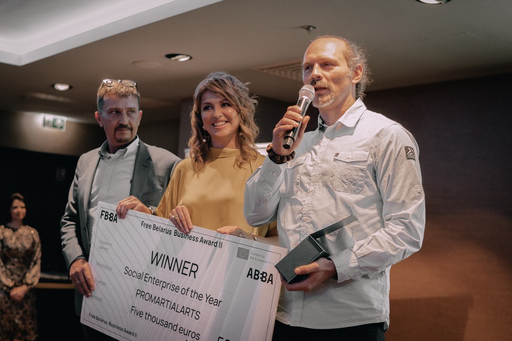 Победителя в номинации «Социальное предприятие года» назвал журналист «Еврорадио» Дмитрий Лукашук. Им стал спортивный клуб PROMARTIALARTS, который популяризирует здоровый образ жизни с помощью спортивных и оздоровительных тренировок.