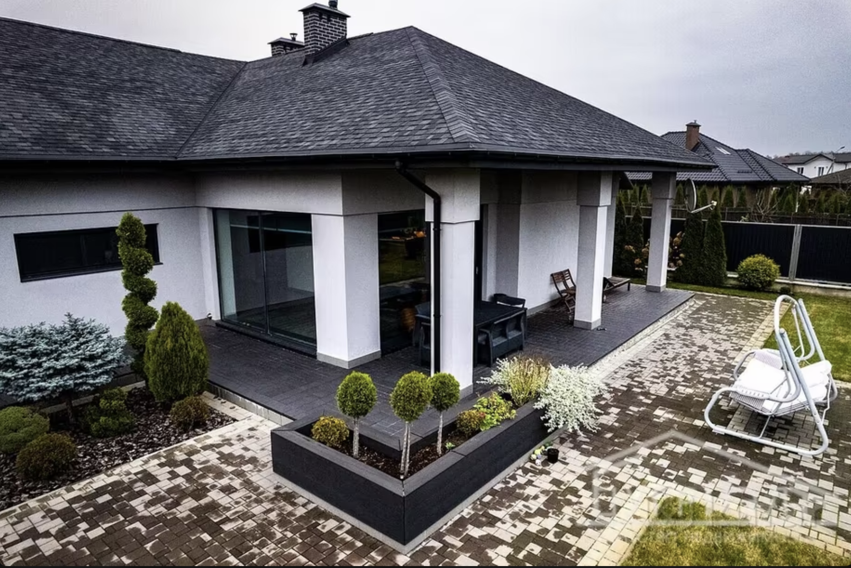Объявление заканчивается фразой: «Не упустите свой шанс приобрести Дом своей мечты». Агенты знали о чем писали, потому что этот дом явно выигрывает у предыдущих современной планировкой, внутренней отделкой и использованием экологически безопасных материалов. Общая площадь дома – 247,6 кв.м. В строительстве использовались «качественные материалы соответствующие современным строительным тенденциям известных мировых брендов». Чтобы это ни значило…