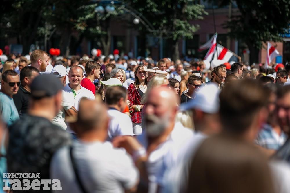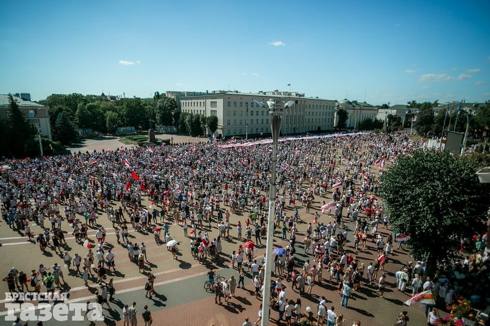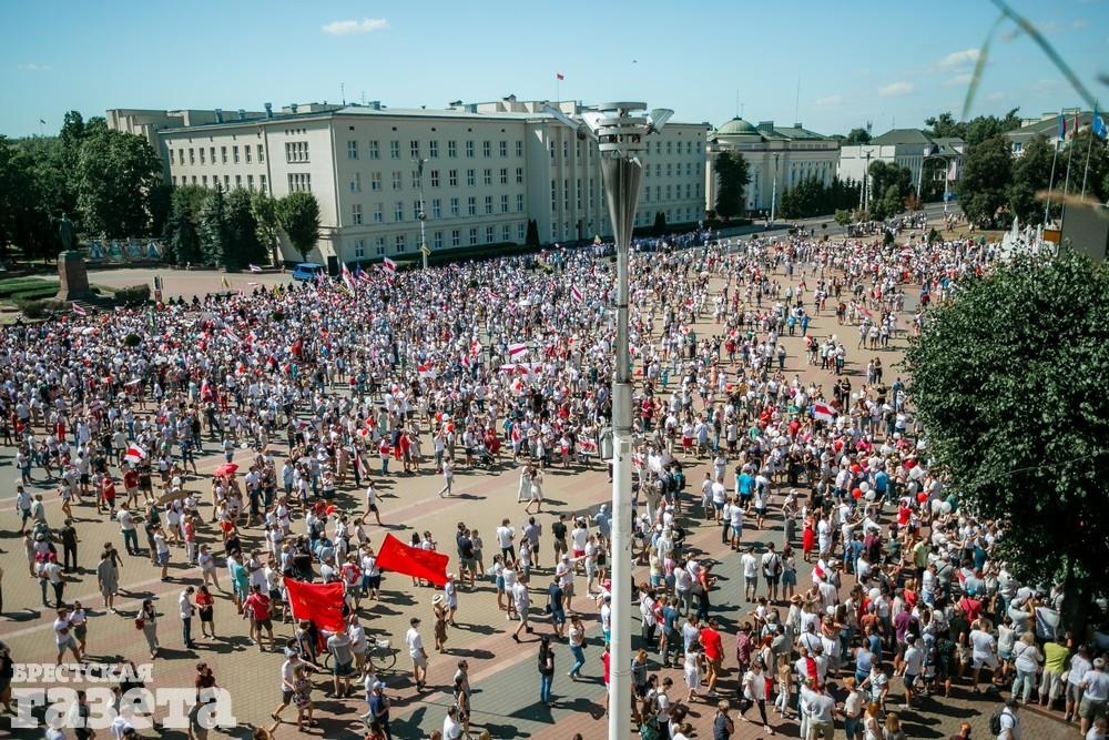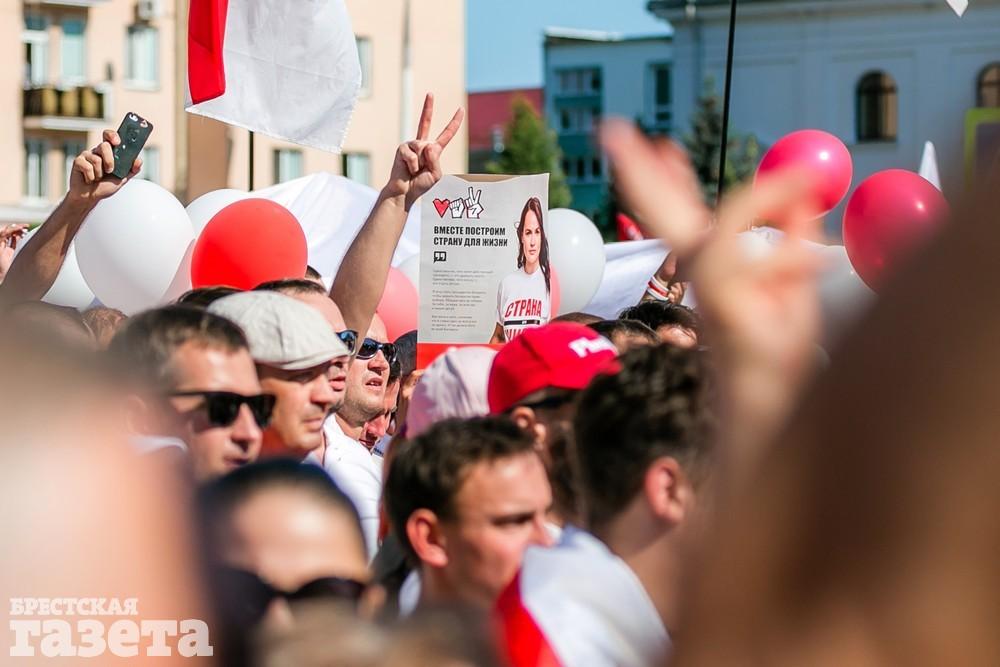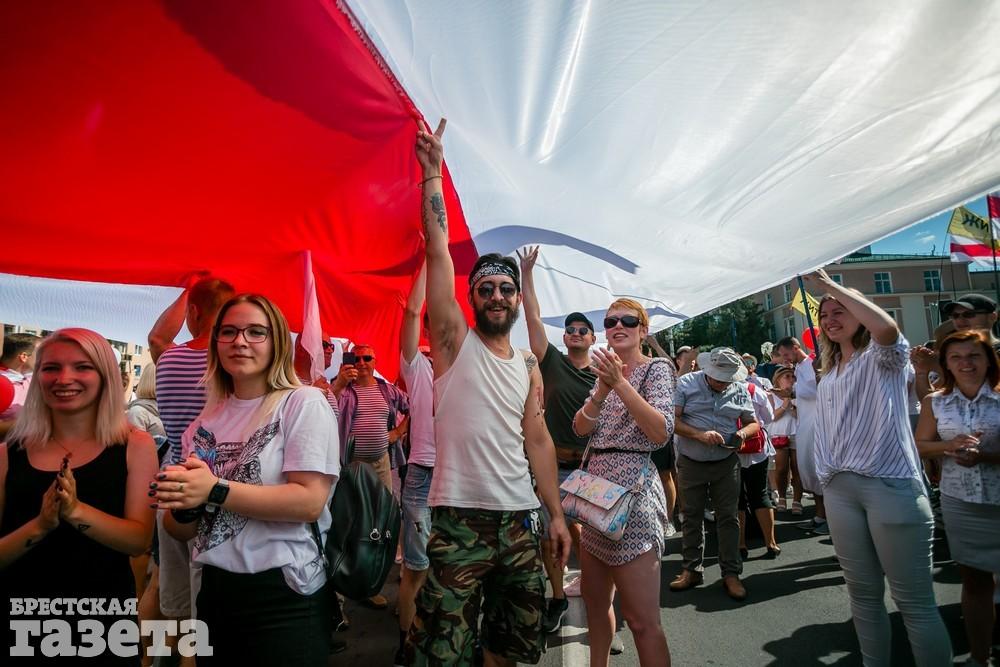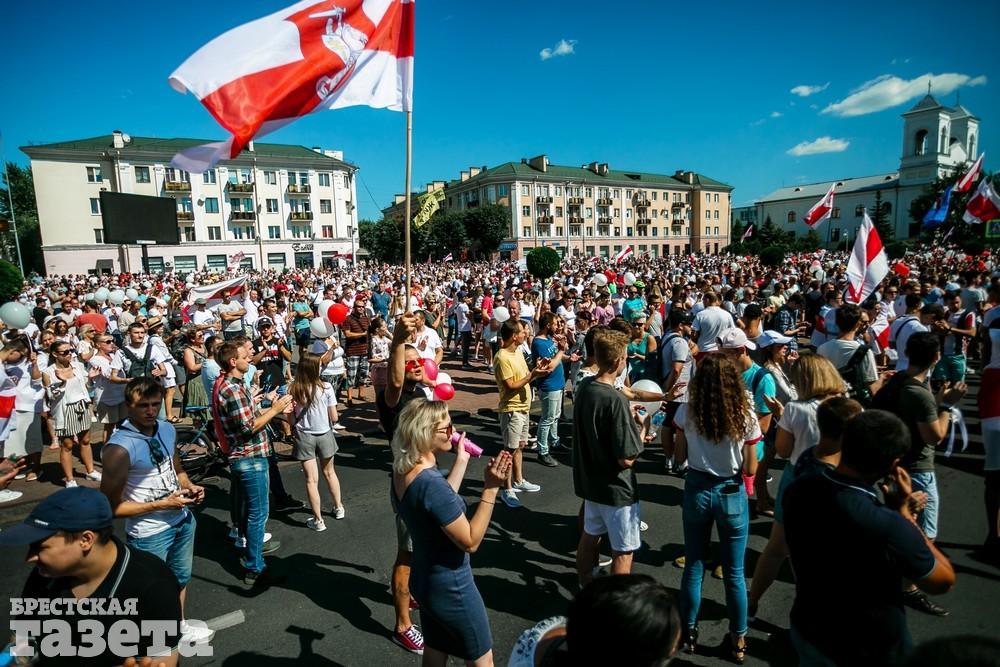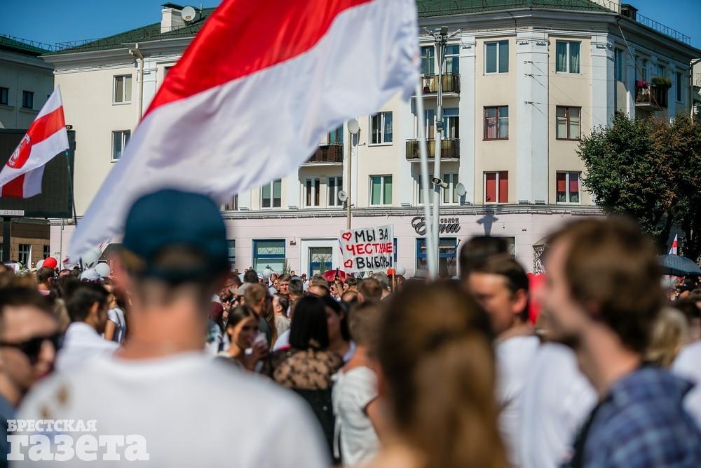 Бело-красно-белые флаги, надежда на лицах горожан, протестные плакаты... Смотрите, что было на площади Ленина в Бресте в прошедшее воскресенье.