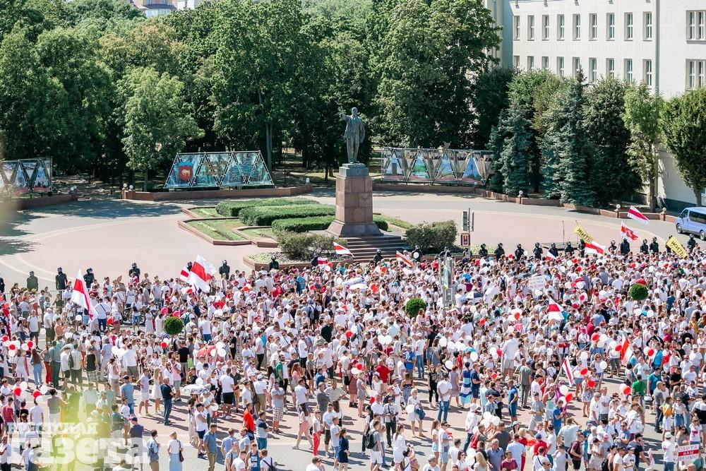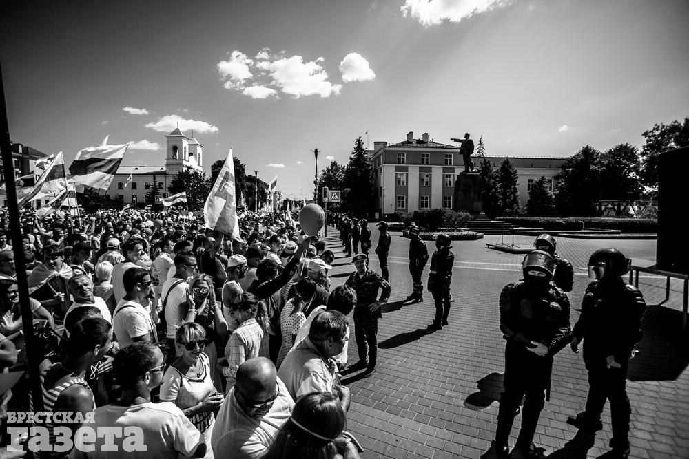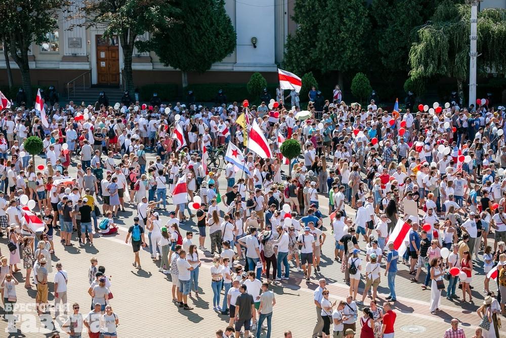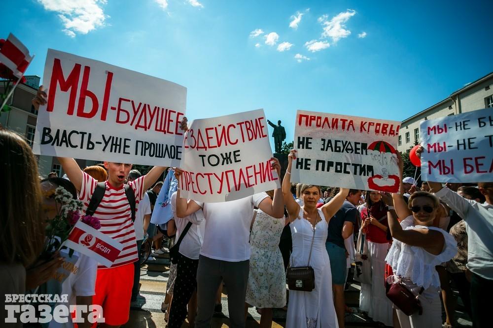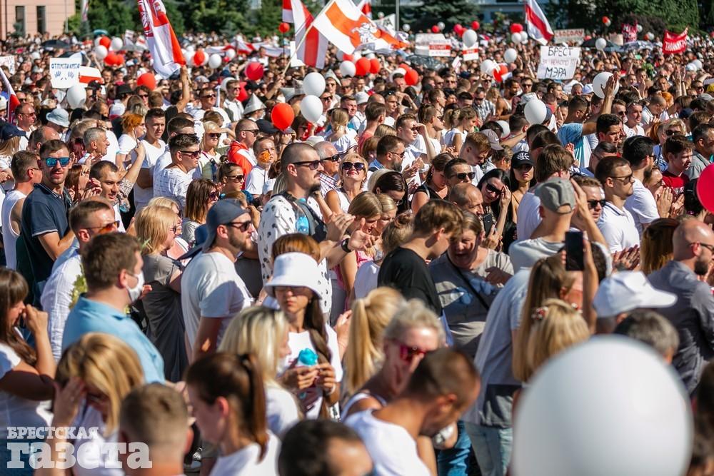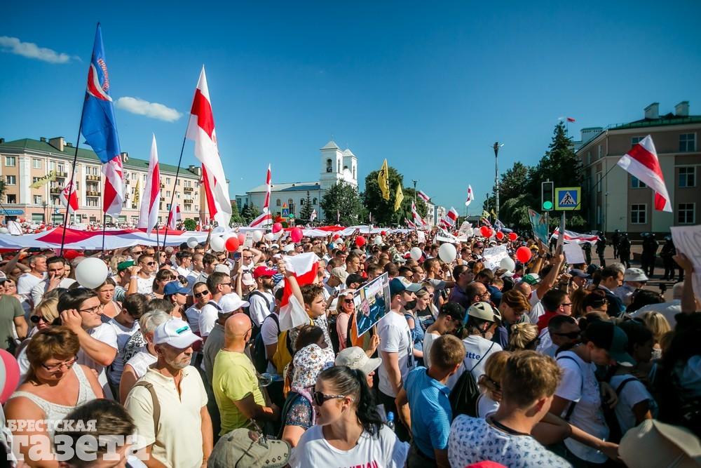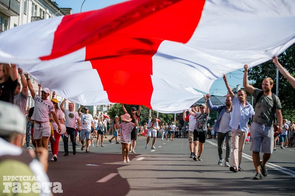 Бело-красно-белые флаги, надежда на лицах горожан, протестные плакаты... Смотрите, что было на площади Ленина в Бресте в прошедшее воскресенье.