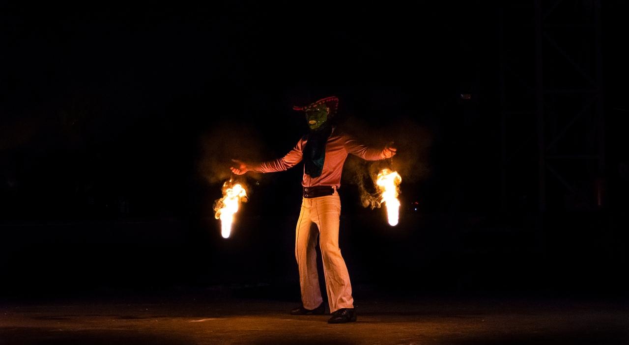 — Забыть костюм, забыть реквизит, забыть топливо – это святое. Однажды чуть не забыли артиста. Всякое бывает. Из нелепых ситуаций могу вспомнить мое участие в фестивале четырех стихий WAFEst в Нижнем Новгороде этим летом. Я там был волонтером и в один из моментов, когда я доливал топливо в чаши по периметру сцены, ветер поменялся, и чаша загорелась от лежащего недалеко факела. В итоге я отдернулся от чаши, на себя и на сцену вокруг немного расплескал топливо. Зрителям потеха: сцена горит, под сценой горит, руки у волонтера горят, ведущий не понимает, что происходит. Я быстро потушил чашу, сбил с себя огонь и мокрыми тряпками вытер сцену от топлива. Все прошло секунд за 20, и из ущерба были исключительно лишь волосы в носу. Потому что по технике безопасности все было подготовлено на похожие случаи. Ну еще однажды старый чемодан в прицепе горел. Ничего страшного, в нем все равно лежал реквизит из несгораемых материалов. Только ручки на снаряжении поменяли, и все. Зато как красиво горел…
