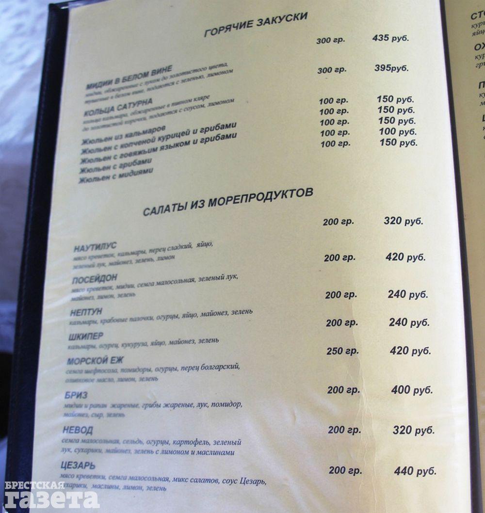А если зайти в приличный ресторан, то надо рассчитывать на то, что придется оставить 600-800 российских рублей (около 19 — 25,5 белорусских рублей), без учета алкоголя.