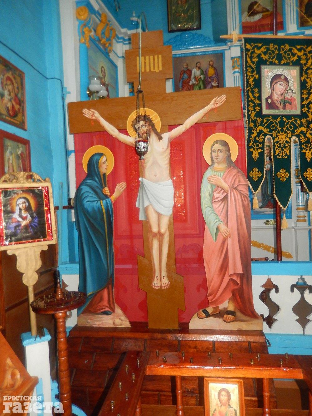 Есть еще одно свидетельство того, что изначально храм был униатским и что он гораздо старше того возраста, что ему приписан. В церкви Петра и Павла и сейчас можно увидеть сразу два распятия: православное и католическое. Отличить их просто. На том распятии, что ближе ко входу, у Христа нога заведена за ногу – это католическое. А по православным традициям на распятии ноги располагаются ровно и вбито по гвоздю в каждую.
