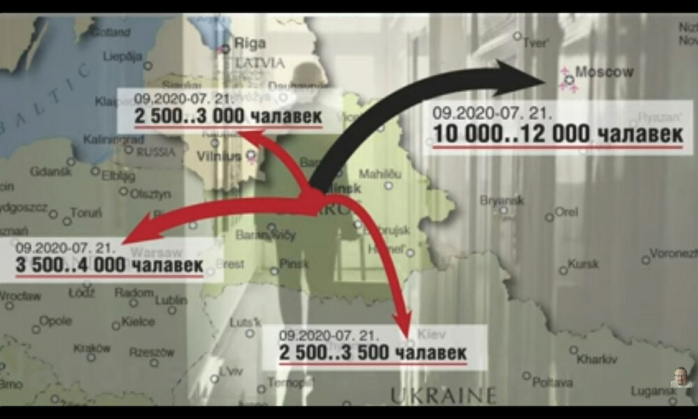 Потоки выехавших в связи с политическим кризисом, по мнению Тышкевича, выглядят так