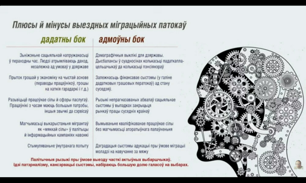 Как это решается? С одной стороны, ростом экономики. Но быстро это не делается, на рост экономики нужны люди, которых нет. Второе — в том числе ликвидация демографических перекосов. Это означает, грубо говоря, чтобы белорусы плодились и размножались. Но чтобы белорусы плодились и размножались, нужны мужчина и женщина. А у нас значительная часть мигрантов — это разлученные семьи, когда мужчина в одной стране, женщина в другой. Физически это тяжело. Это мина замедленного действия и под демографическими процессами, кроме остального.