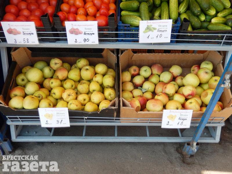 Яблоки: местные — по 1,5 рубля за кг, польские — от 2 рублей.