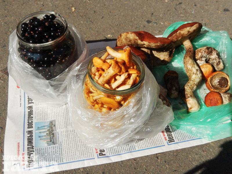 У жительницы д. Подлесье-Радваничское Брестского района Валентины остались лисички и чуток подберезовиков. Как и другие торговцы, лисички она продает банками, а другие грибы — небольшими кучками, цена каждой — по 3 рубля.