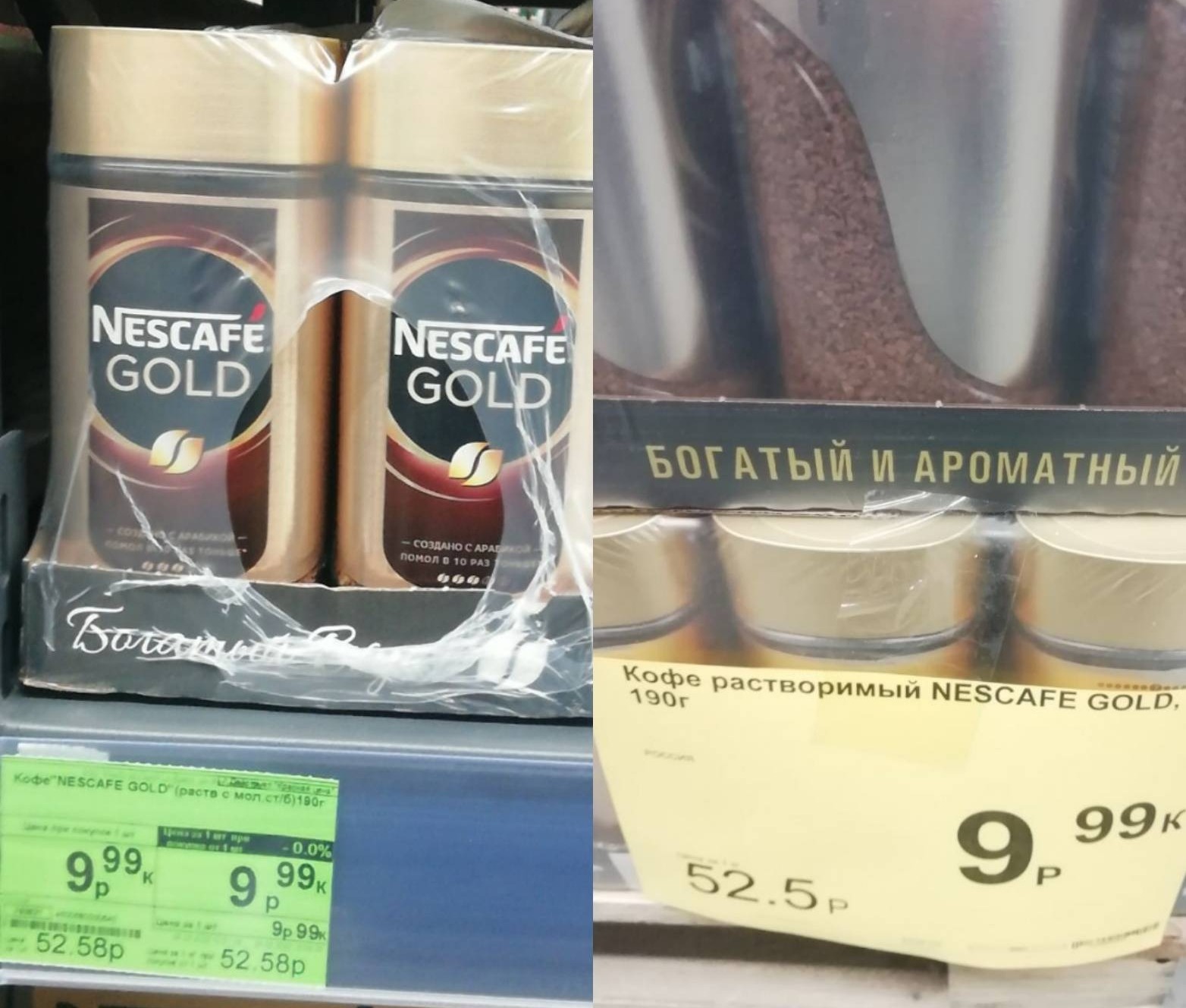Для чистоты эксперимента сравнили цены на идентичные позиции товаров с популярной «Копеечкой». Например, банка кофе «Нескафе Голд», что в «Копеечке», что в новом дискаунтере стоит одинаково: 10,99р.