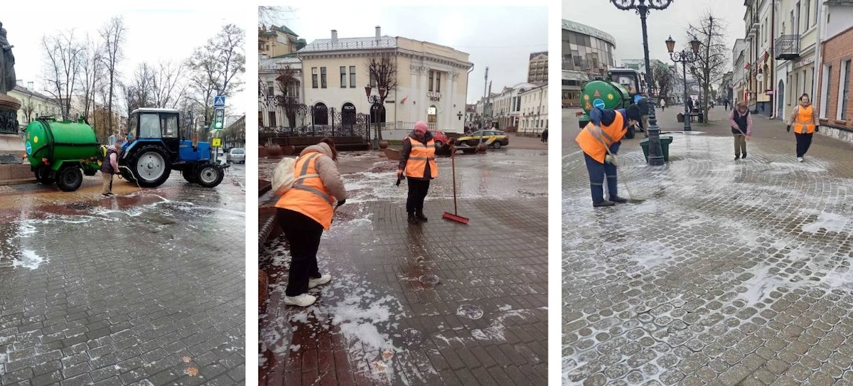 «Покрытие из тротуарной плитки является надежным, долговечным, обладает высокими эксплуатационными свойствами. Тем не менее, оно нуждается в своевременном уходе и контроле состояния. Очищение плитки проводится с целью обеспечения эстетической привлекательности и продления срока эксплуатации покрытия», — пишет ПКУП «Коммунальник».