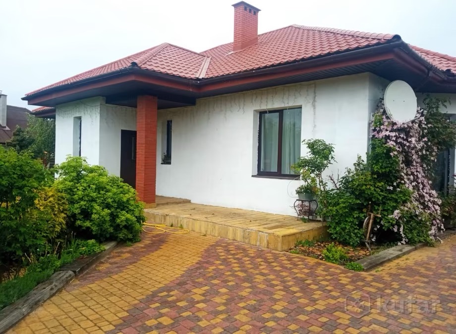 Дом блочный, кровля выполнена из металлочерепицы. Общая площадь –  210 м², а жилая 150 м². На территории в 10,5 соток расположены баня, беседка и искусственный пруд.