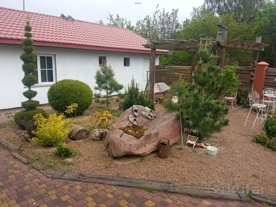 В объявлении указано, что в одноэтажном доме с высокими потолками (2,7 м) 5 комнат. Есть полностью оборудованная кухня площадью 23,5 м², обустроенные ванна и санузел.