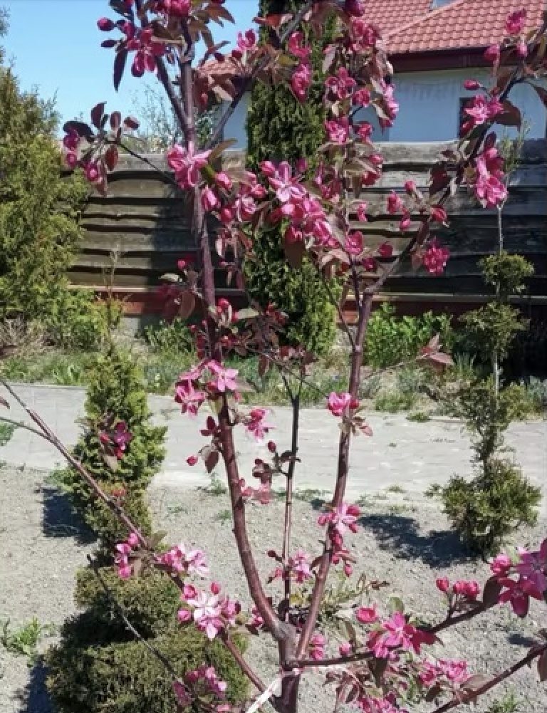 Украшение участка – своеобразная ландшафтная композиция с хвойными деревьями. Хозяин дома указал, что на территории есть еще и бассейн. Жаль, фото не предоставил.