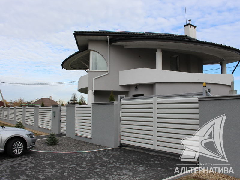 Территория огорожена металлическим забором с откатными воротами.
