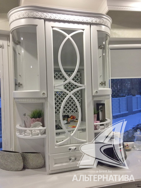 Дизайн помещений выполнен в одной цветовой гамме. Корпусная и встроенная мебель белого цвета смотрится элегантно.