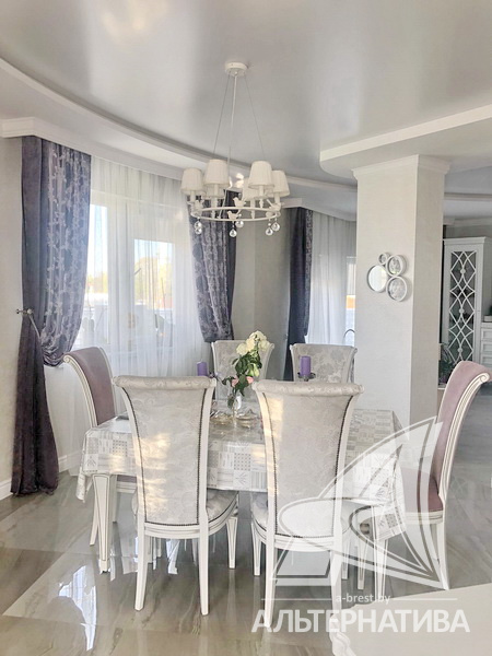 Как сказана в описании, «полезная площадь кухни-столовой – это открытое пространство, заполненная светом окружность, дополнительно созданная за счет оконных групп и опорных колонн на границе с холлом».