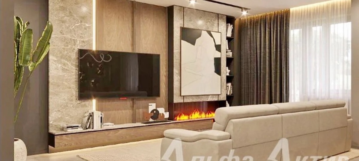 В квартире три комнаты, раздельный санузел, и лоджия. Если верить дизайн-проекту гостиная может быть в светло-бежевых тонах, со стильной мебелью и аксессуарами. Минималистичный дизайн, камин и световая инсталляция в виде карты на одной из стен — все выглядит оригинально и уютно.