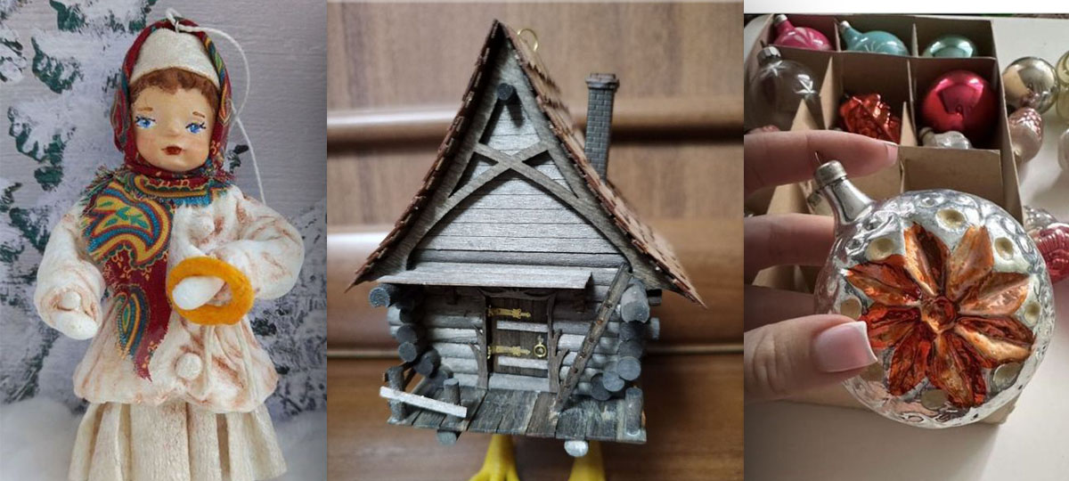 Для любителей винтажной тематики или ностальгии по СССР — «трушные» новогодние стеклянные игрушки советского времени (антиквариат). Тут и знаменитые сосульки, и шары со звездами, и шишки, и непонятная абракадабра. Продают такие игрушки целыми наборами.  Можно купить за 30 – 50 BYN.